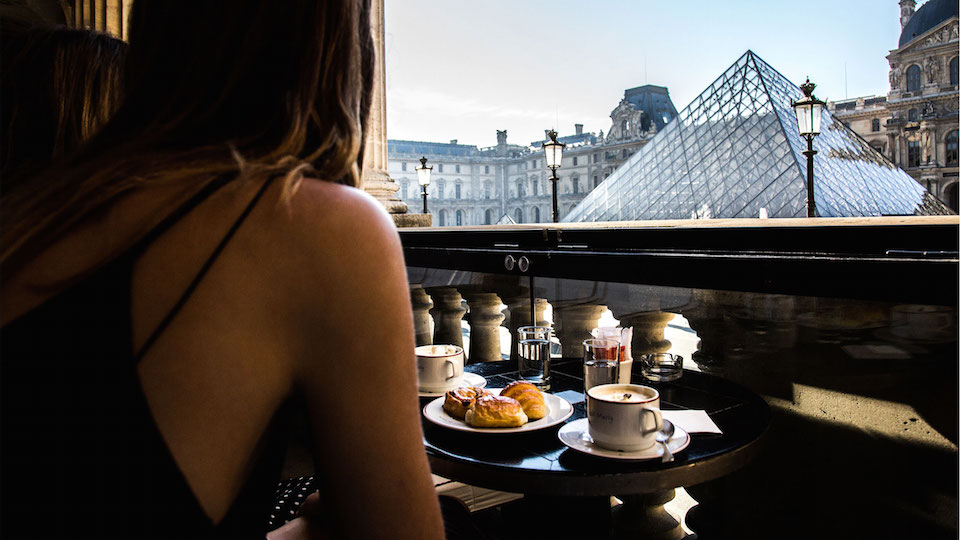 En plein coeur de la cour Napoléon, vous pourrez siroter un cocktail ou bien déguster un délicieux repas, face à la mythique pyramide du Louvre.
