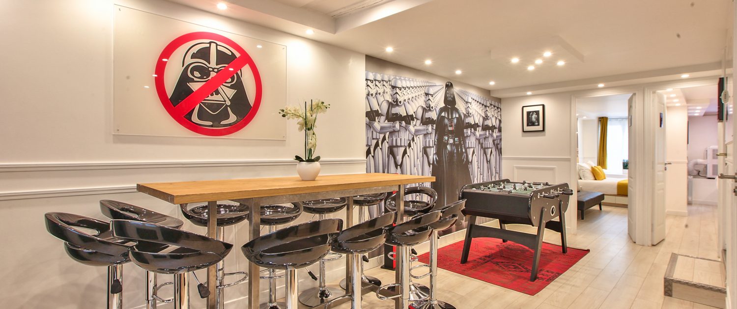 Tous les fans de Star Wars se doivent de lire ces quelques lignes! Pour les adeptes de la saga, le paradis a un nom et il s’appelle Pulp’s Toys. En effet, situé en plein coeur du quartier de St Germain, la boutique propose figurines, maquettes, posters et tout ce qui peut avoir un lien avec la guerre des étoiles. Cette boutique permet aux femmes comme aux hommes d’acheter tout ce qui se refère à la saga passant du sabre laser au bikini de Princesse Leia. Si vous voulez continuer votre escapade sur le thème de Padawan ou Jedi, et passer la nuit dans ce même univers, Urban Flat in Paris, vous propose deux appartements courte durée qui satisferont vos désires. Passez une ou plusieurs nuits dans l’univers de science-fiction.
