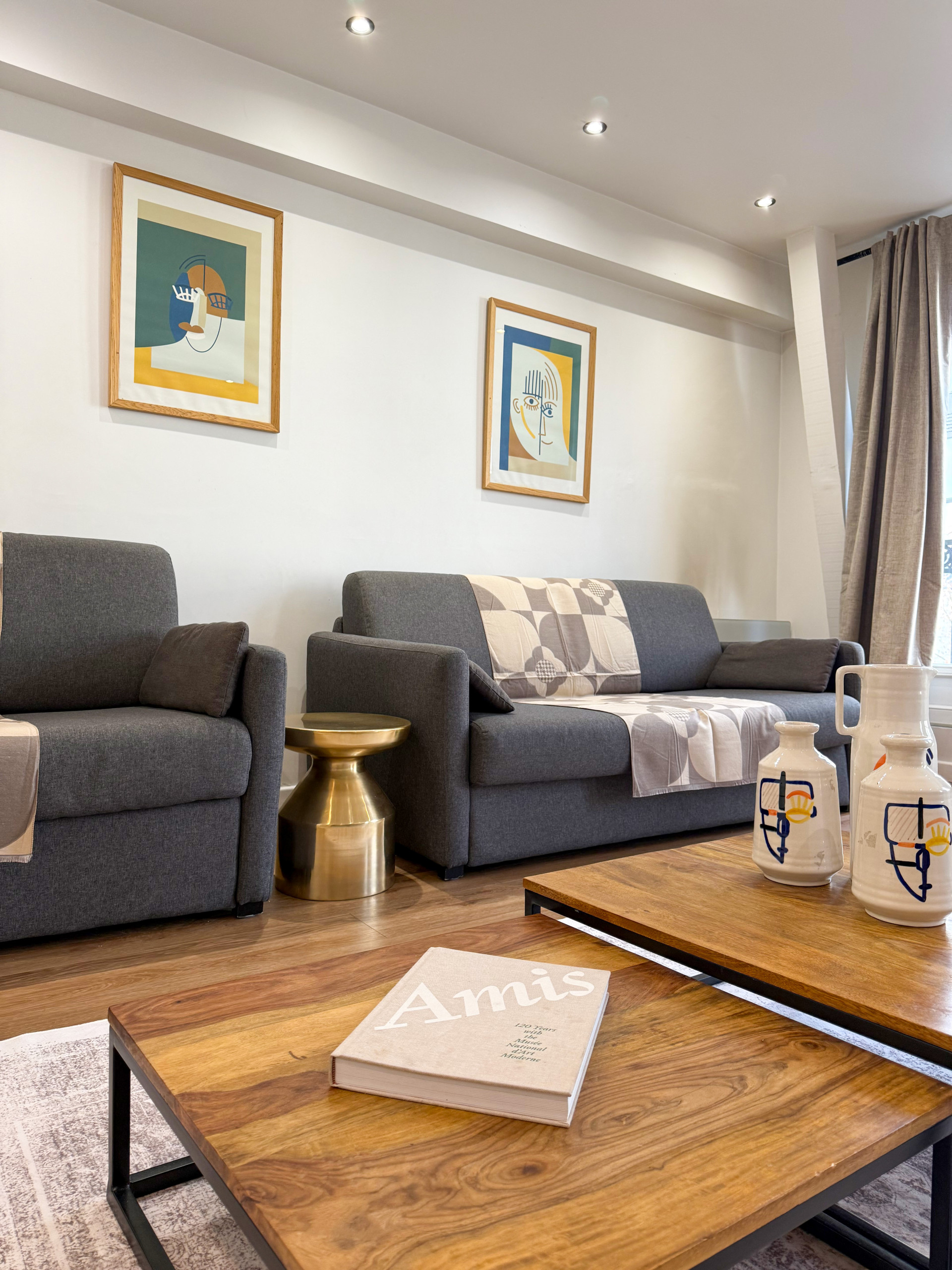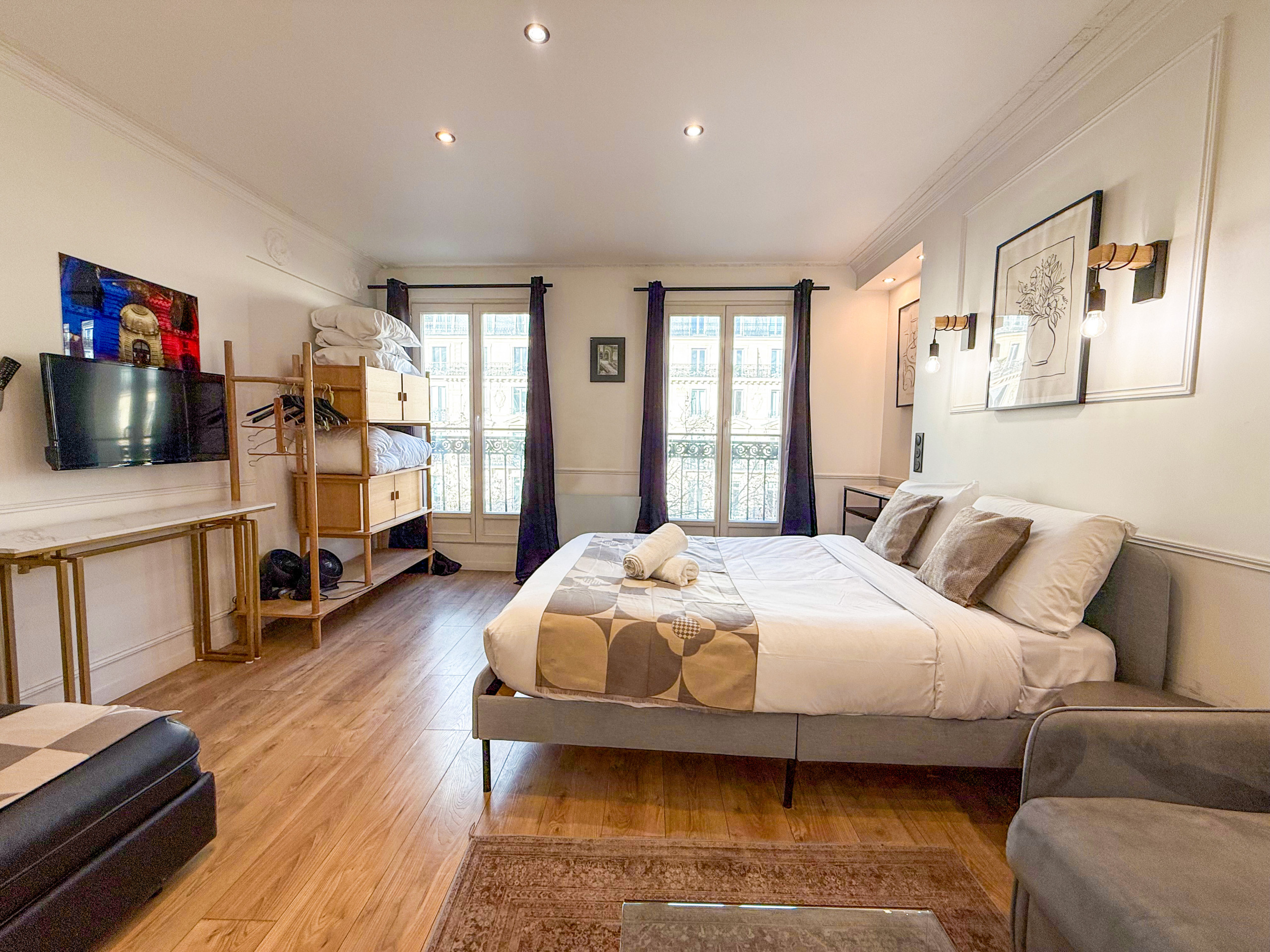 Our apartment is located in the Grands Boulevards area., famous for its bars, classic brasseries and numerous show venues (the Opéra Comique, the Folies Bergère and the Grand Rex) , not to mention clubs where you can dance the night away. Take a stroll through the area to admire its stately Haussmannian buildings, and pop into the Musée Grévin to stare at astonishingly realistic waxworks of your favourite celebrities.