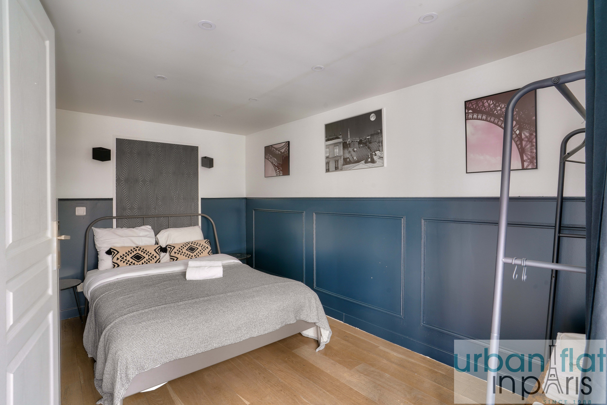 The spirit of Gustave Eiffel itself came to inspire the decoration of this stunning apartment. But don’t worries, you won’t have to wait online to take the elevators. Just like the Eiffel Tower, the decoration is metallic, yet modern and warm. The large open kitchen and the two convertible sofas are ideal to welcome up to 10 people.