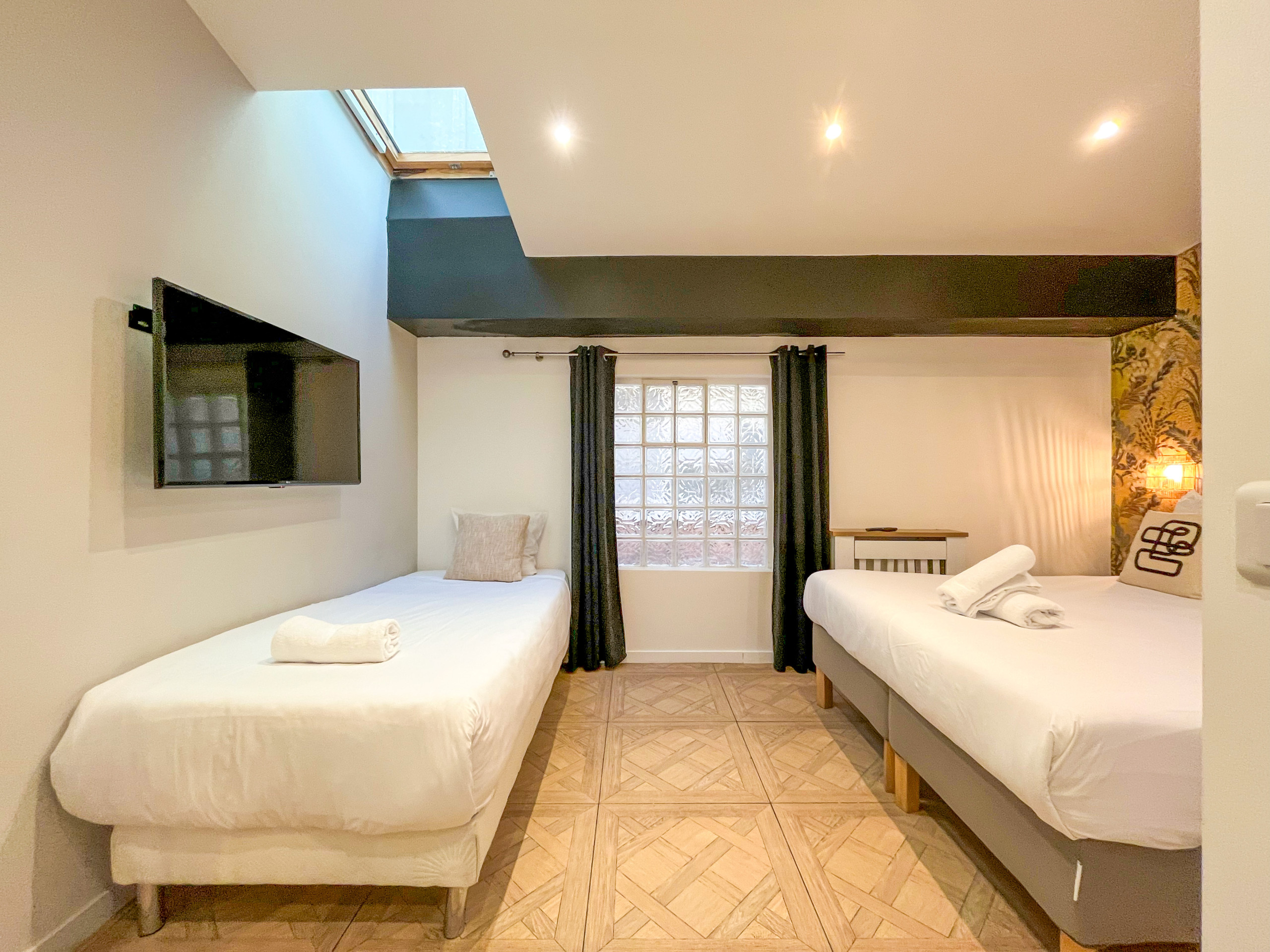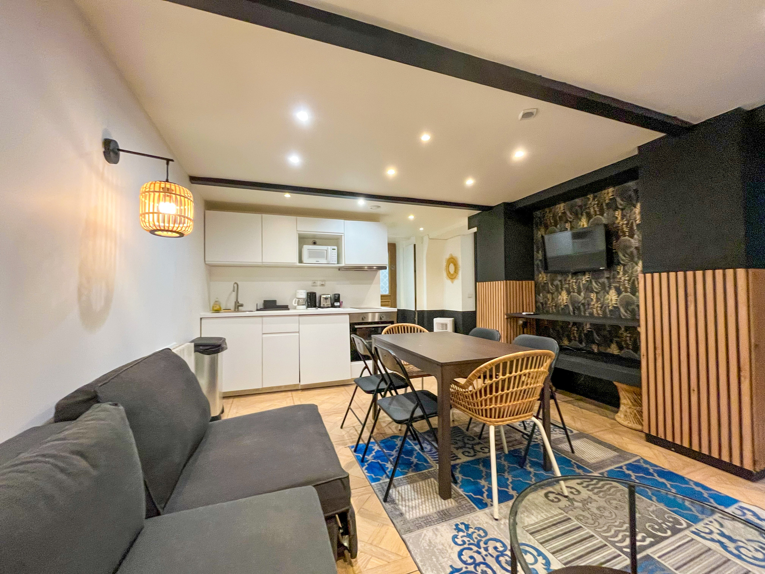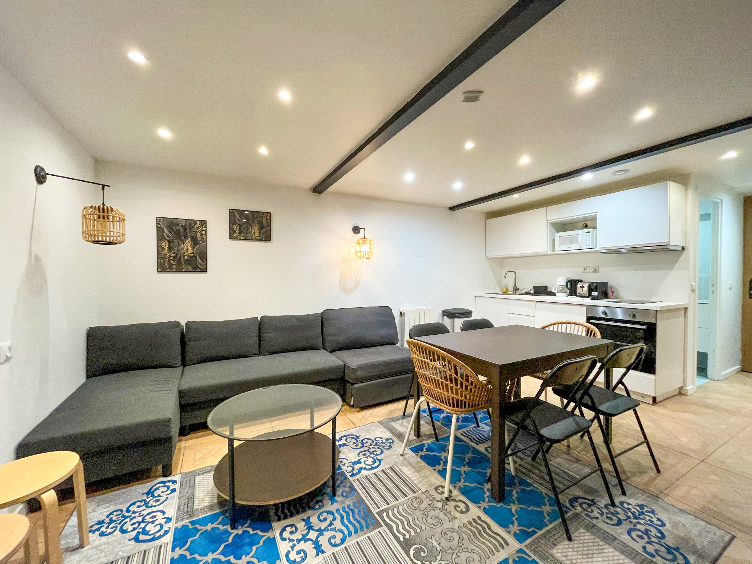 Original in its layout, our apartment will seduce you with its pastel color and in which we wanted to preserve the original stone and vaults, so characteristic of the Paris of yesteryear.