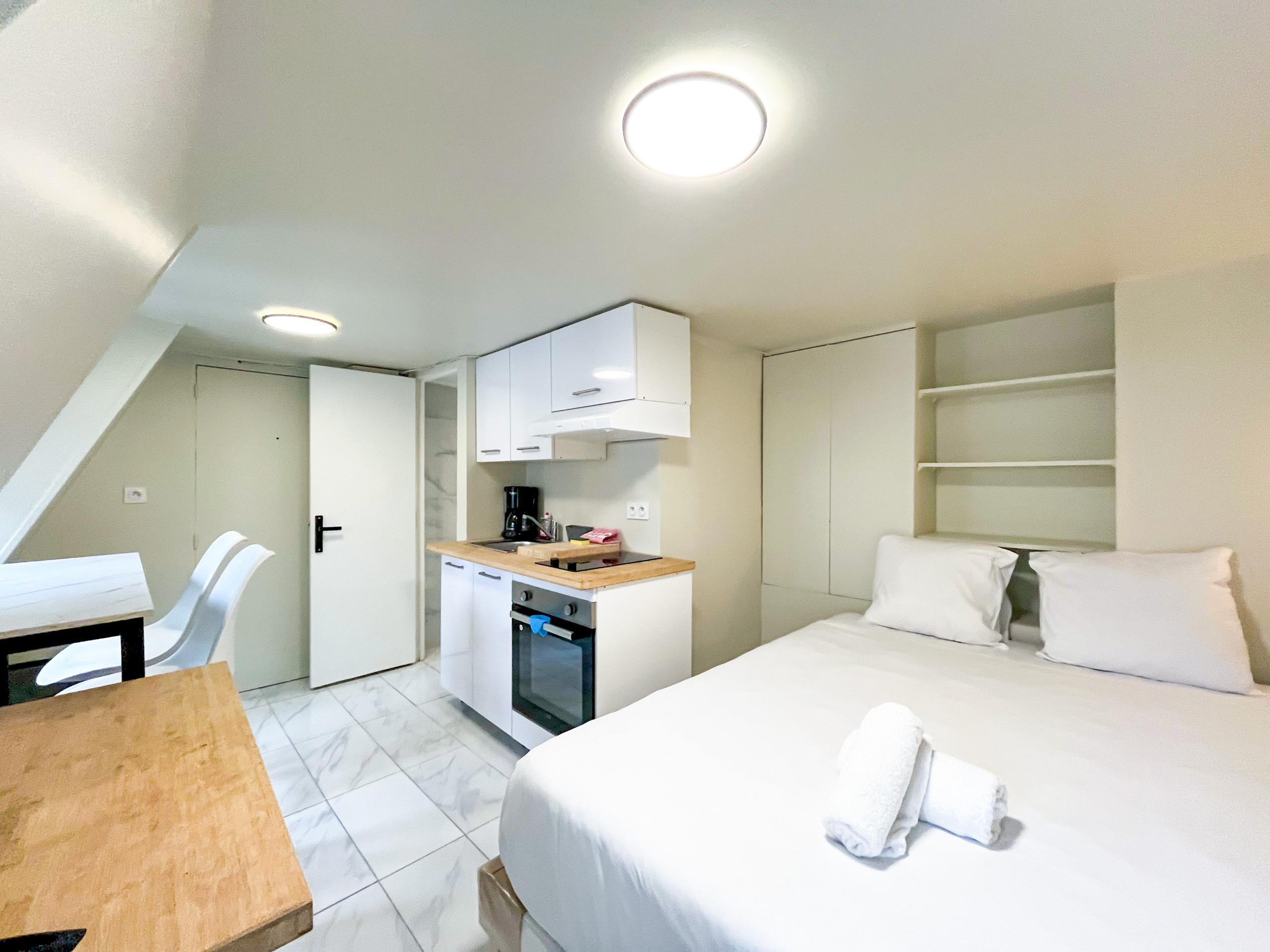 The apartment is located in the 10th arrondissement. The neighbourhood is known for its dynamic atmosphere, diverse culinary scene and a mix of traditional Parisian architecture with a modern urban touch. You can find lively street markets, eclectic shops and a vibrant cultural landscape.