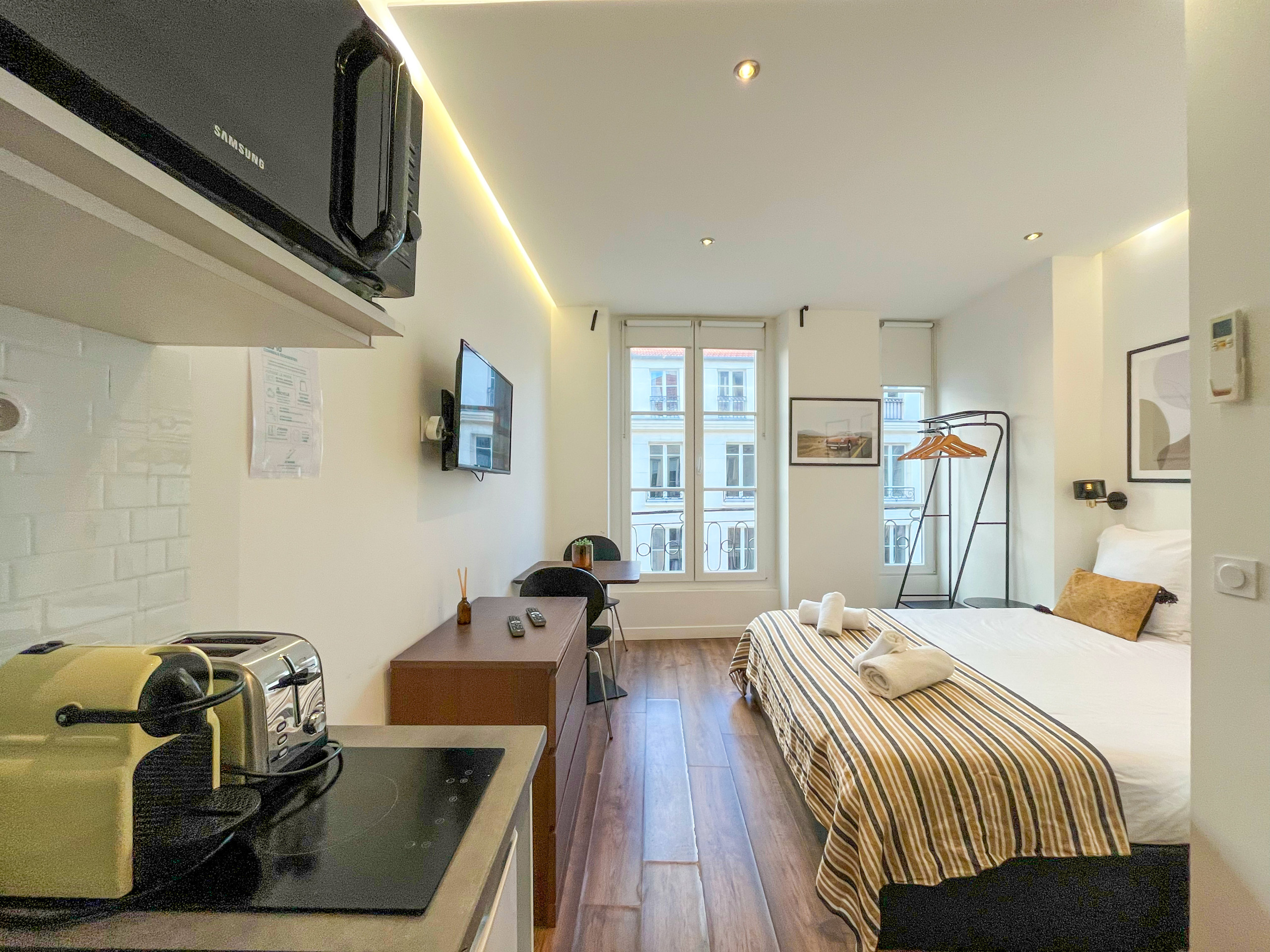 Whether you're travelling alone, as a couple, with family or friends, discover our studio ideally located in the heart of Paris, designed to make your stay unforgettable and effortless.