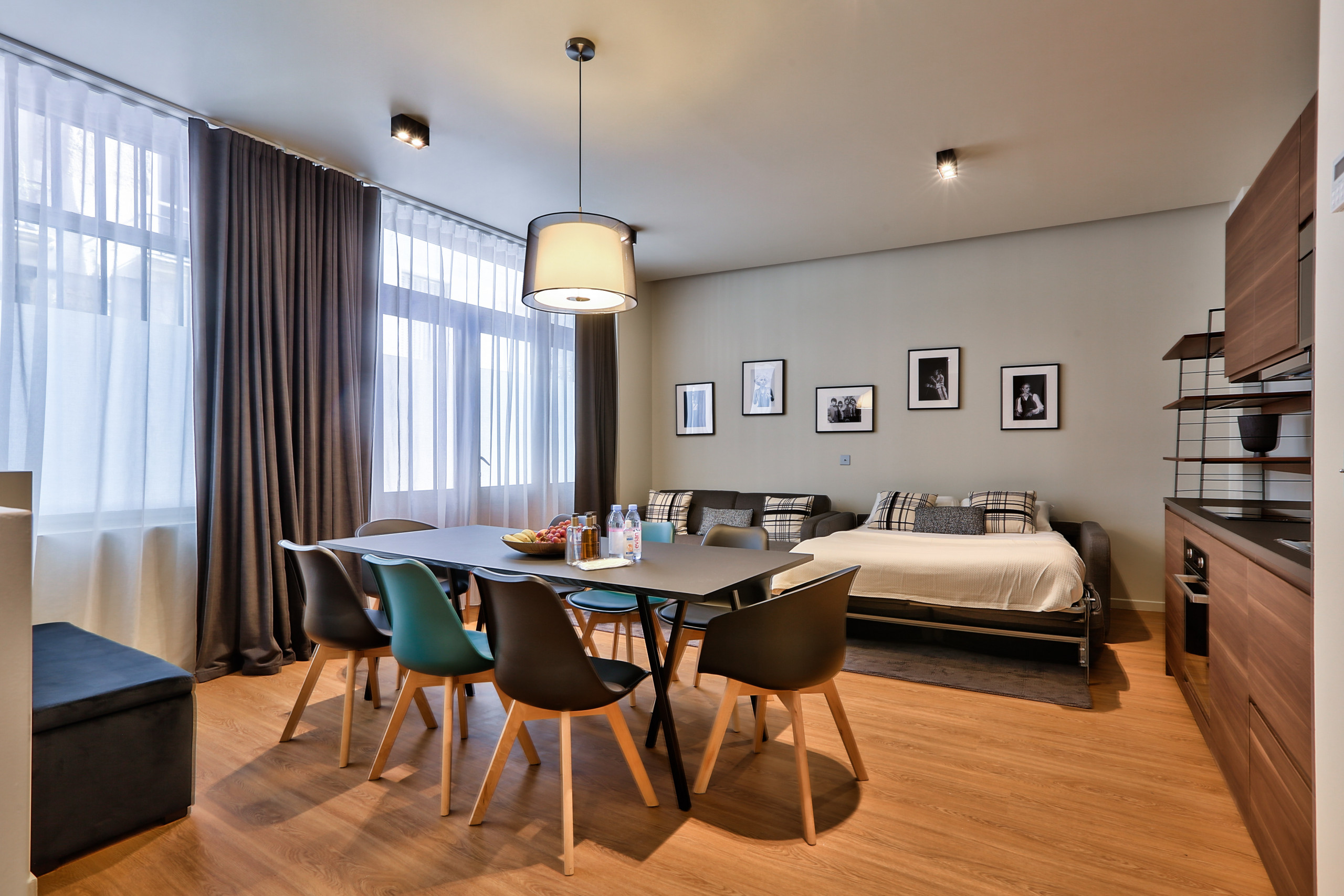 Te encantará relajarte en los sofás del salón o sentarte en la zona del comedor para charlar con amigos o en familia o compartir un refrigerio o una copa de vino después de un día agitado en la capital.