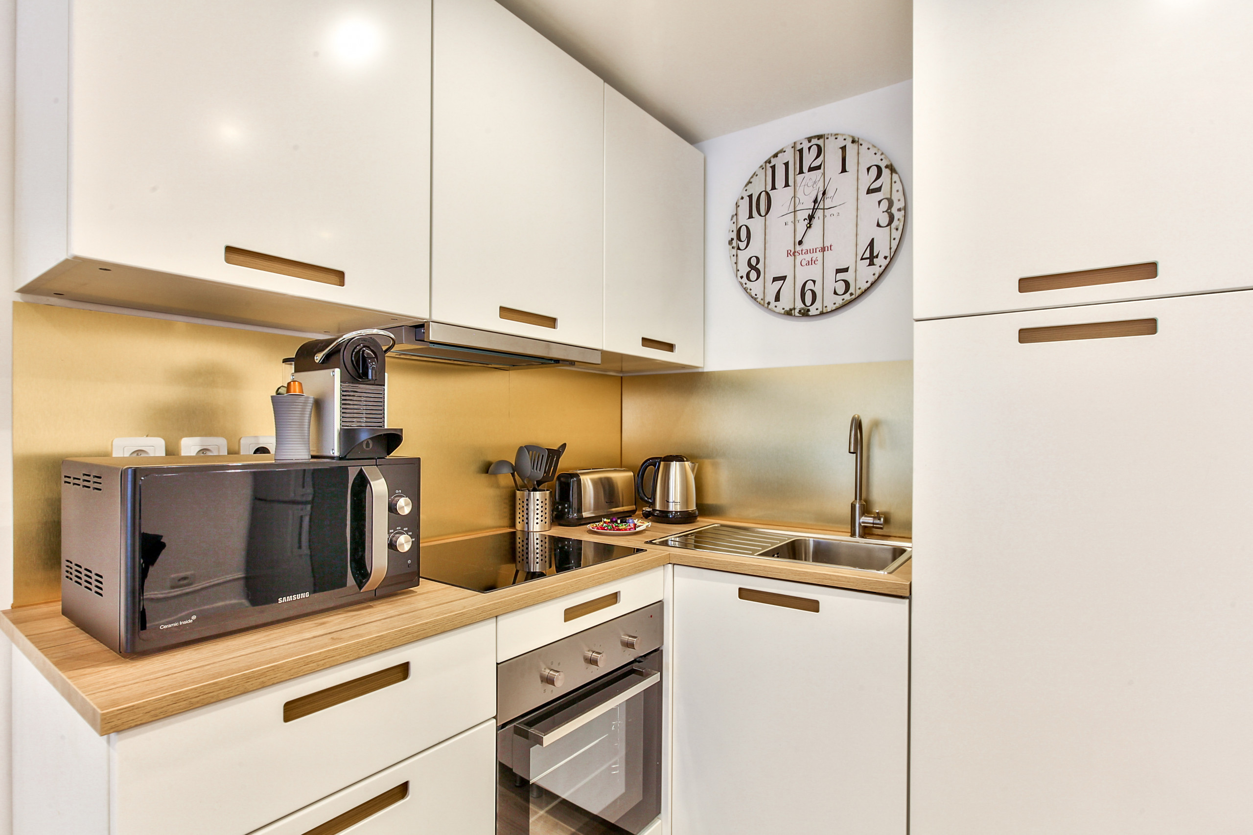 La cocina americana, está equipada con nevera, microondas, horno, congelador, vajilla/cubertería, cafetera, tostadora y hervidor de agua.