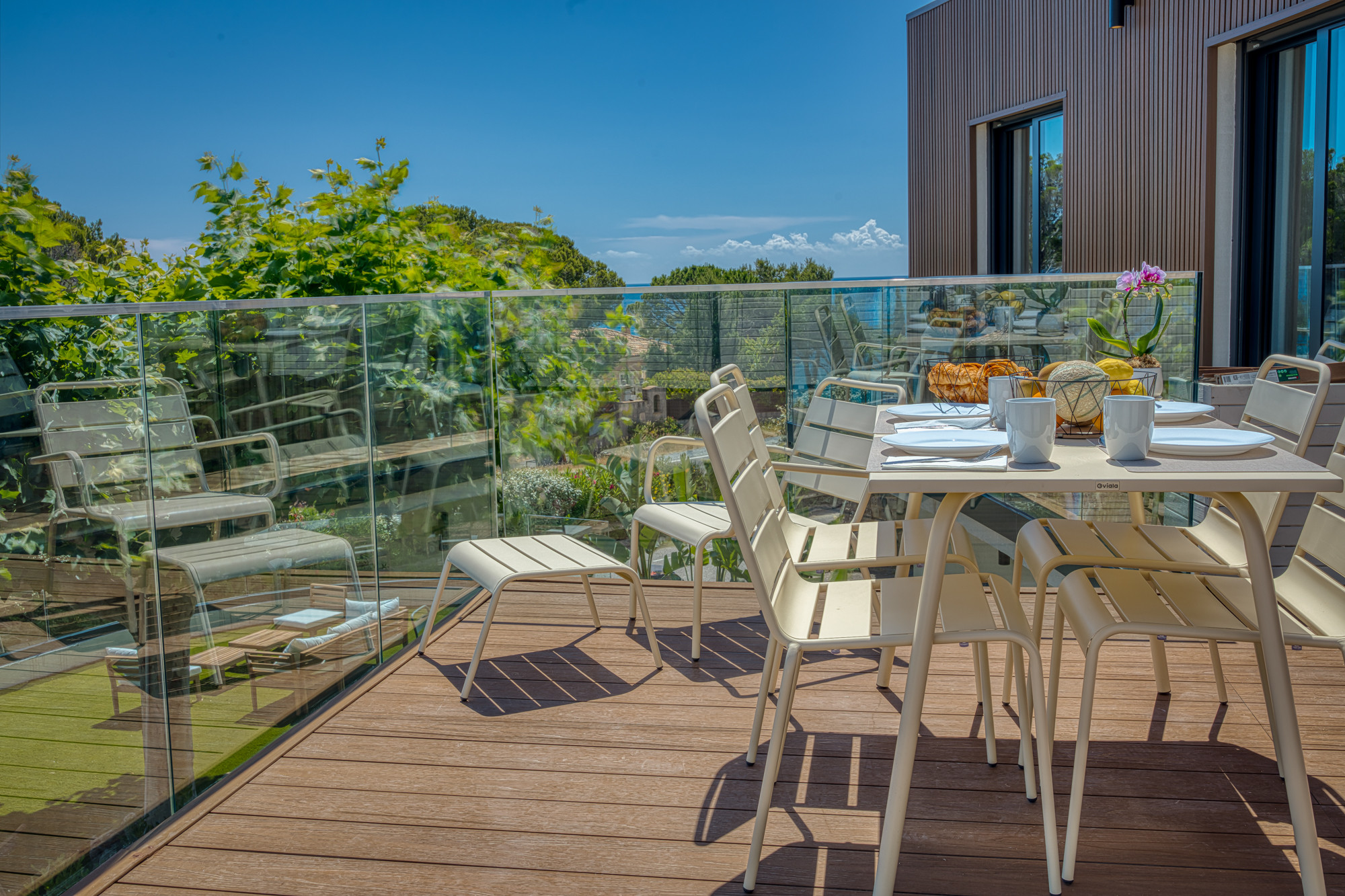 Terraza Excepcional: Disfrute de un balcón privado de 21 m² con una vista panorámica sobre el Mediterráneo, arrullado por la brisa marina.