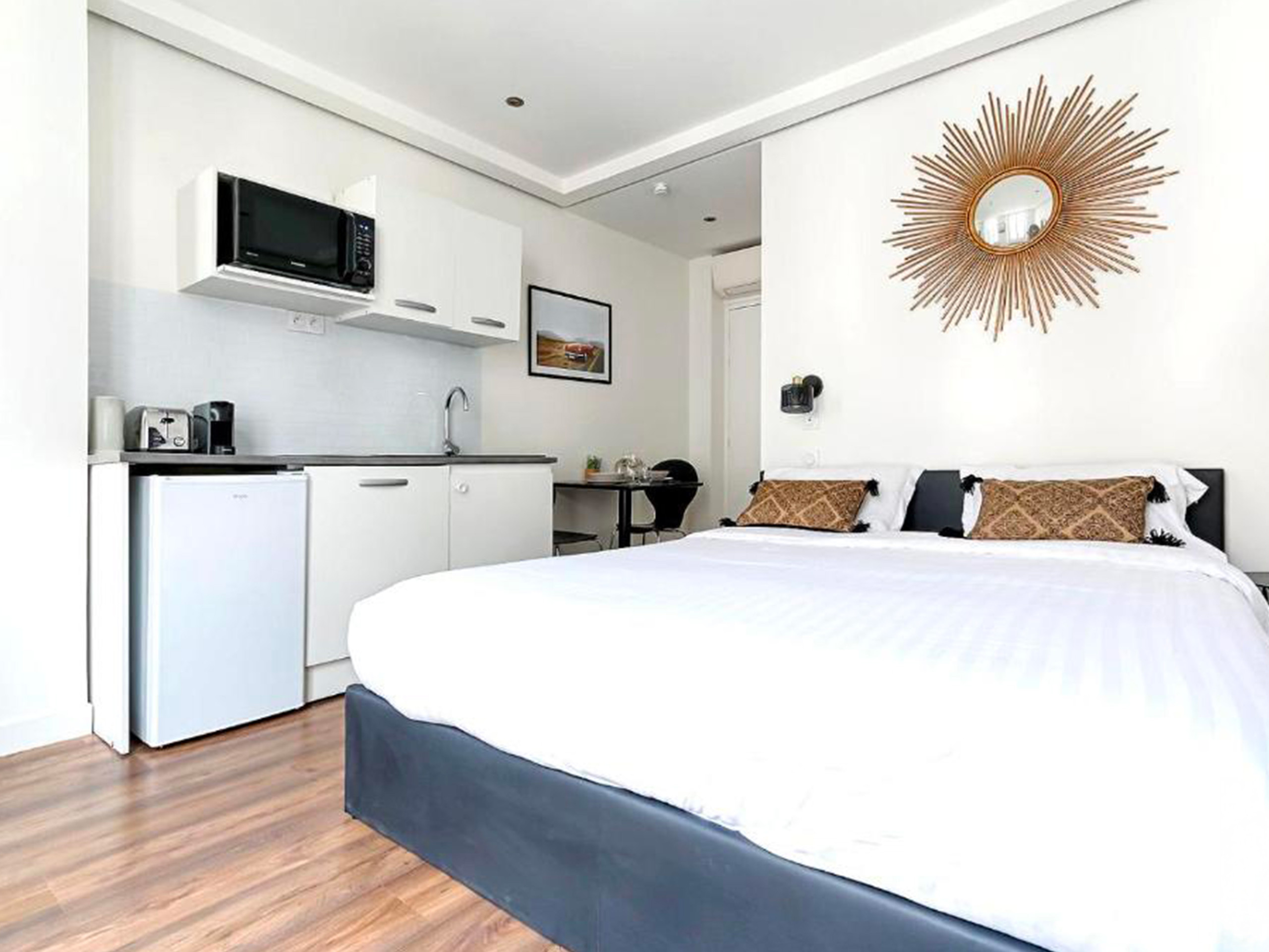 Ya sea que viaje solo, en pareja, en familia o con amigos, descubra nuestro estudio idealmente ubicado en pleno centro de París, diseñado para hacer su estancia inolvidable y sin esfuerzo.