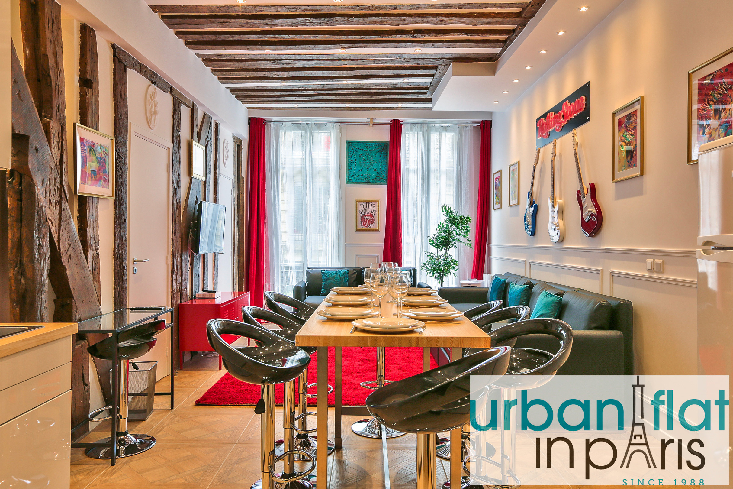 Situé au premier étage, à l’entrée du ravissant Passage Ponceau, le Rolling Stones Flat a été entièrement rénové et pensé dans un style rock’n’roll sur le thème des Rolling Stones. Ce charmant appartement composé de 3 chambres, un salon, une salle de bain et un toilette séparé, est idéalement conçu pour accueillir jusqu’à 10 personnes.