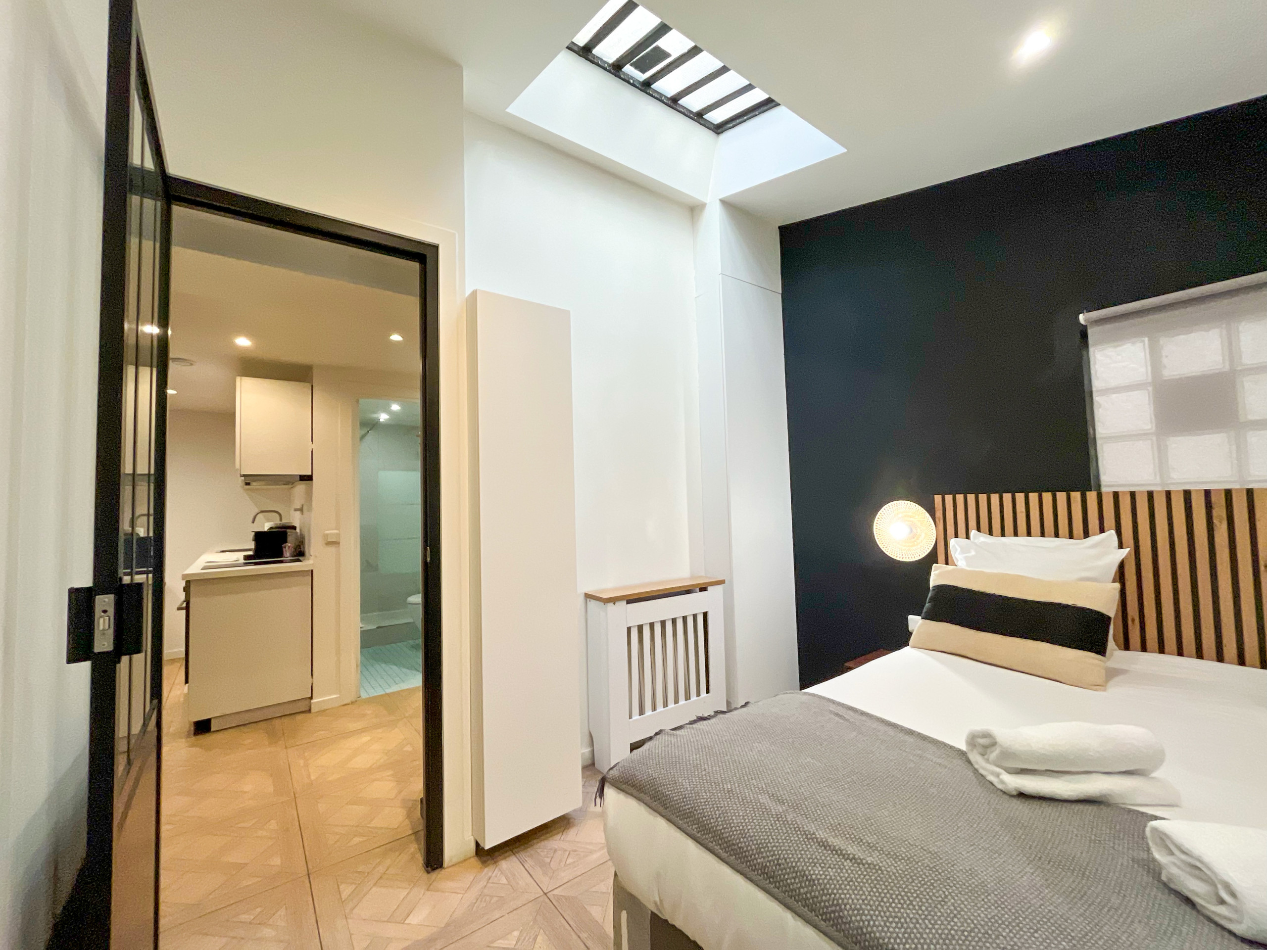 Original dans son agencement, notre appartement vous seduira par ses couleurs aux tons pastels et dans lequel nous avons souhaité conserver la pierre et les voutes d’origine , si caracteristiques du Paris d’autrefois.