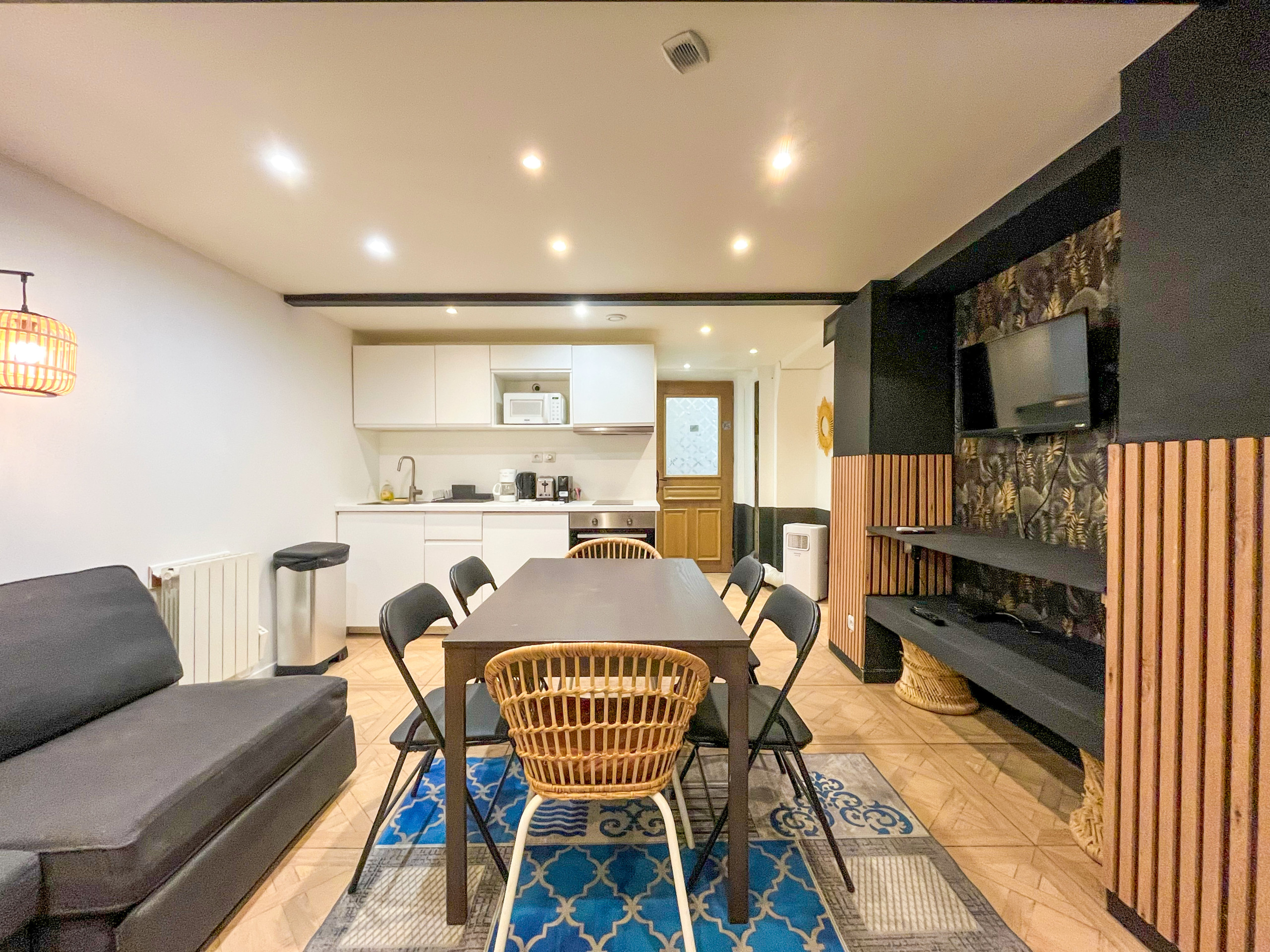 L’appartement est équippé de wifi, sèche-cheveux,, grille pain, cafetiere, bouilloire, chauffage électrique, Télévision.