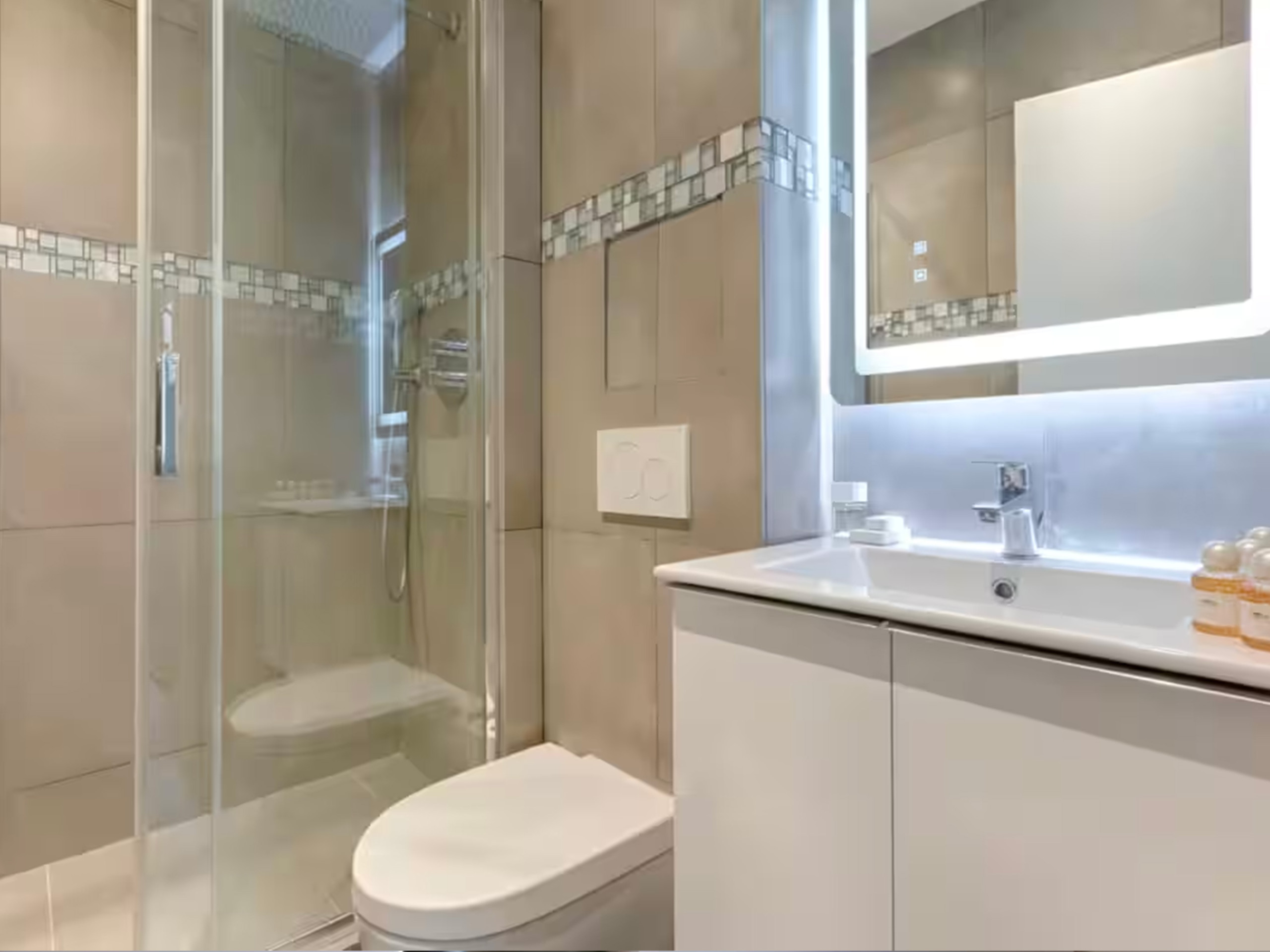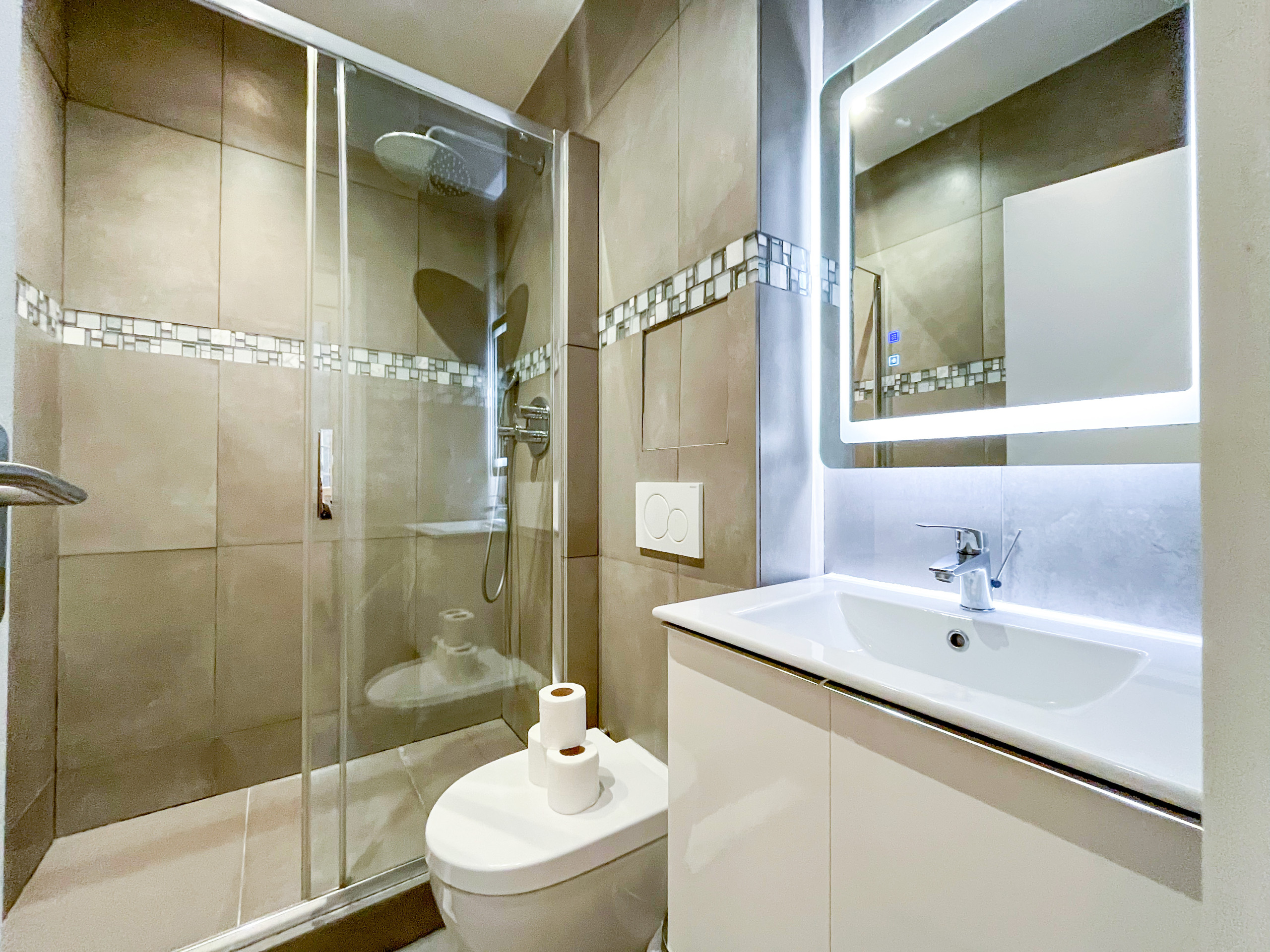 • Salle de Bain Moderne : Une grande douche fonctionnelle, des grandes serviettes douces, gel douche, shampoing, et un sèche-cheveux sont à votre disposition. Les toilettes sont intégrées pour un agencement simple et efficace.